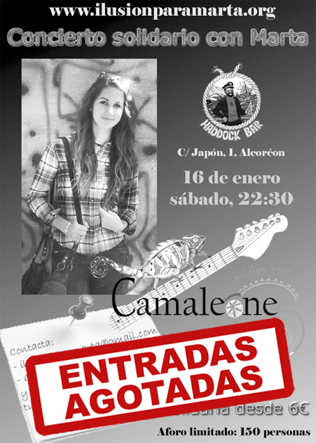 El aforo para el concierto solidario de los Camaleones el próximo día 16 de enero en el Haddock Bar ya está completo. Una vez más, muchísimas gracias por vuestra solidaridad.
